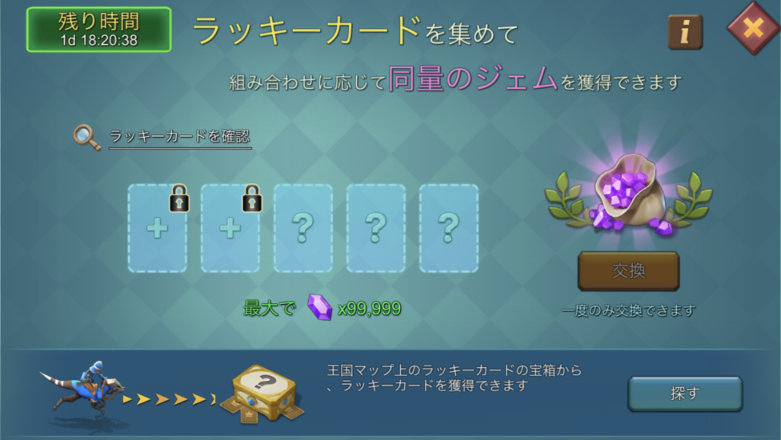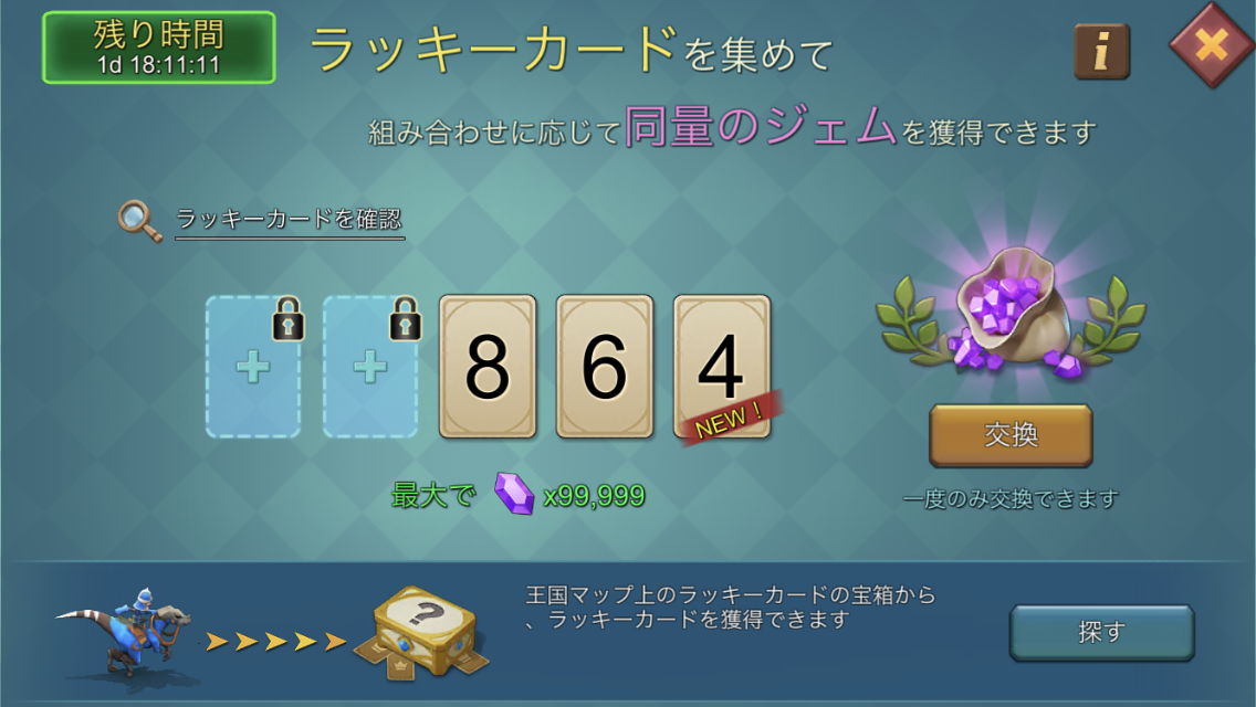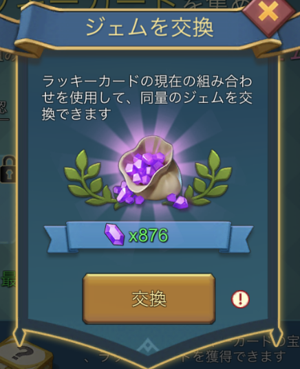 ラッキーカードを集めると、最も大きい組み合わせと同量のジェムを交換できます。